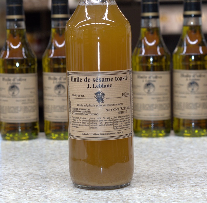 D’une couleur jaune clair, cette huile de sesame a un goût neutre qui supporte bien la cuisson.
