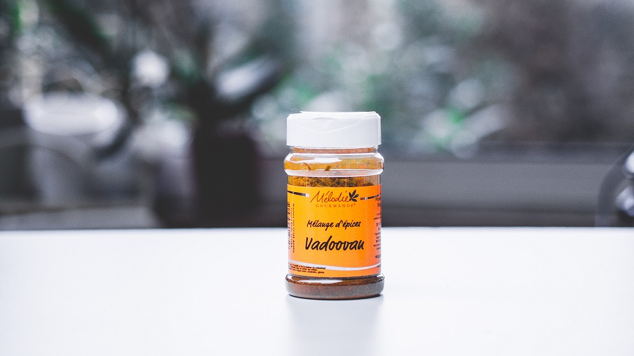 Ce melange Vandoovan est originaire du Sud de l’Inde et plus traditionnellement de la région de Pondishéry. Surnommé le « French Curry » par les anglo-saxons, ce mélange à été créé sur la base des curry indiens avec des notes françaises comme le raisin ou l’ail.